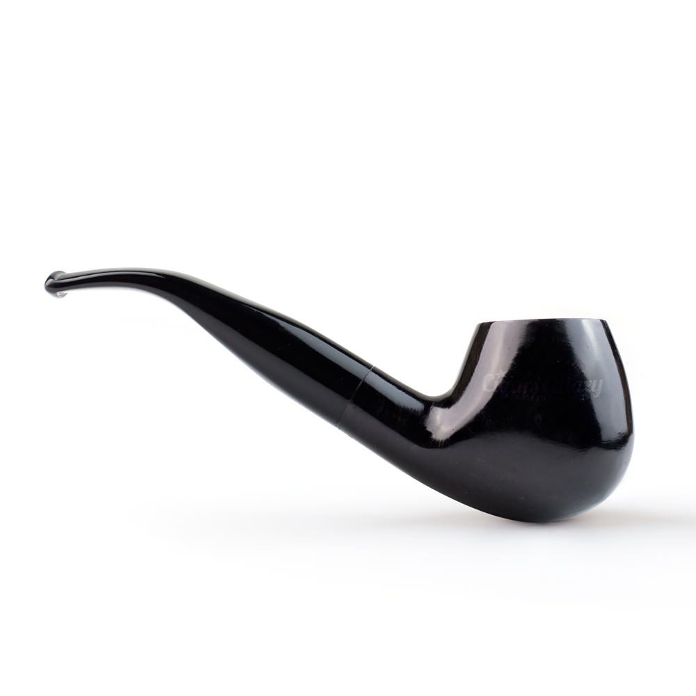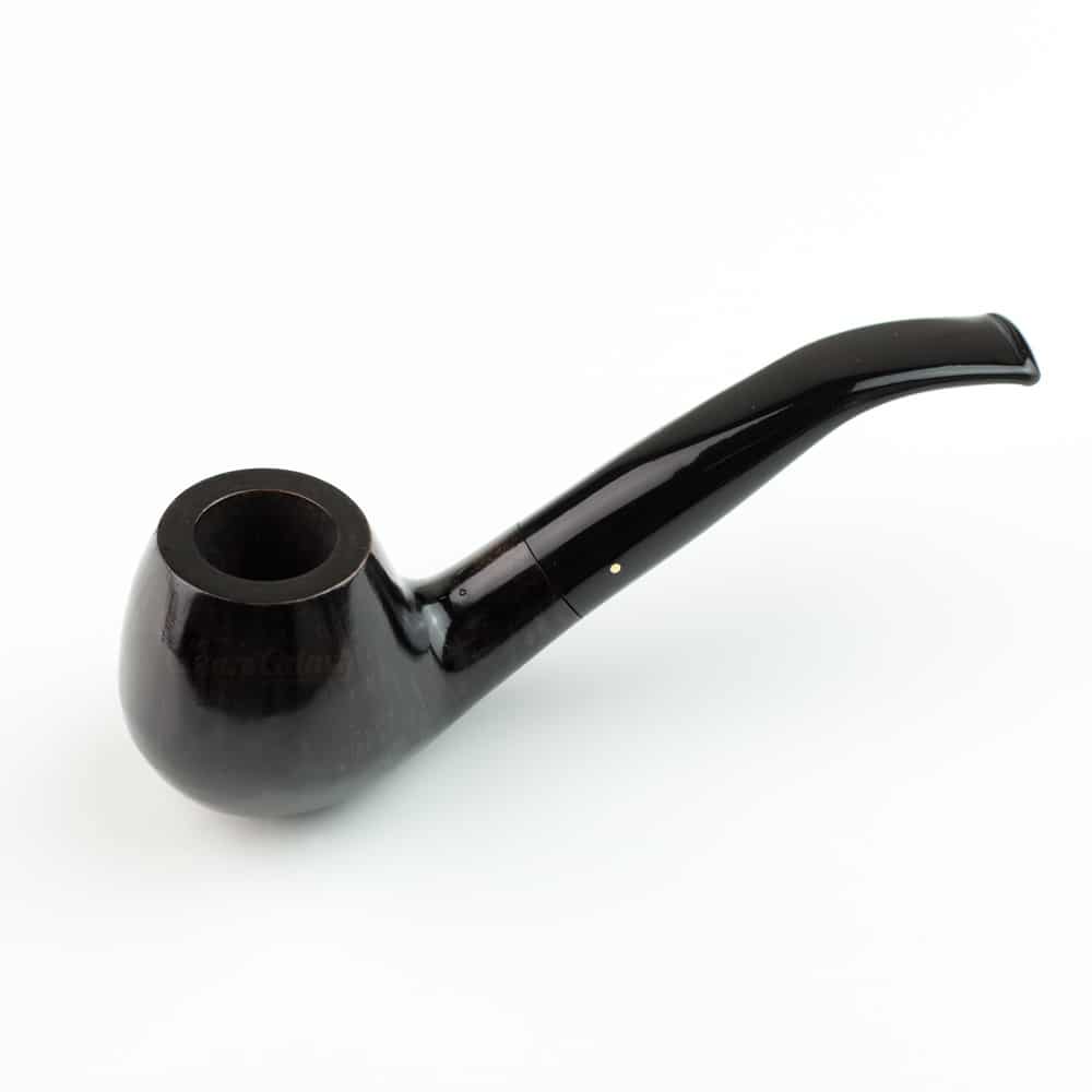 Μια πολύ όμορφη κομψή καμπυλωτή πίπα Pipex-Stefanou, ελληνικής κατασκευής σε μαύρο χρώμα με ελαφρά διτονία σε χρώμα ξύλου.