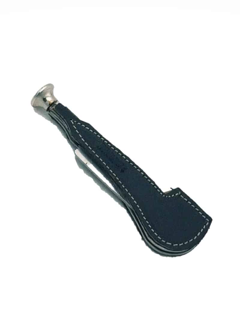 Μεταλλικό εργαλείο καθαρισμού πίπας σε μοντέρνο σχέδιο, με επένδυση από γνήσιο δέρμα, από την Prince.