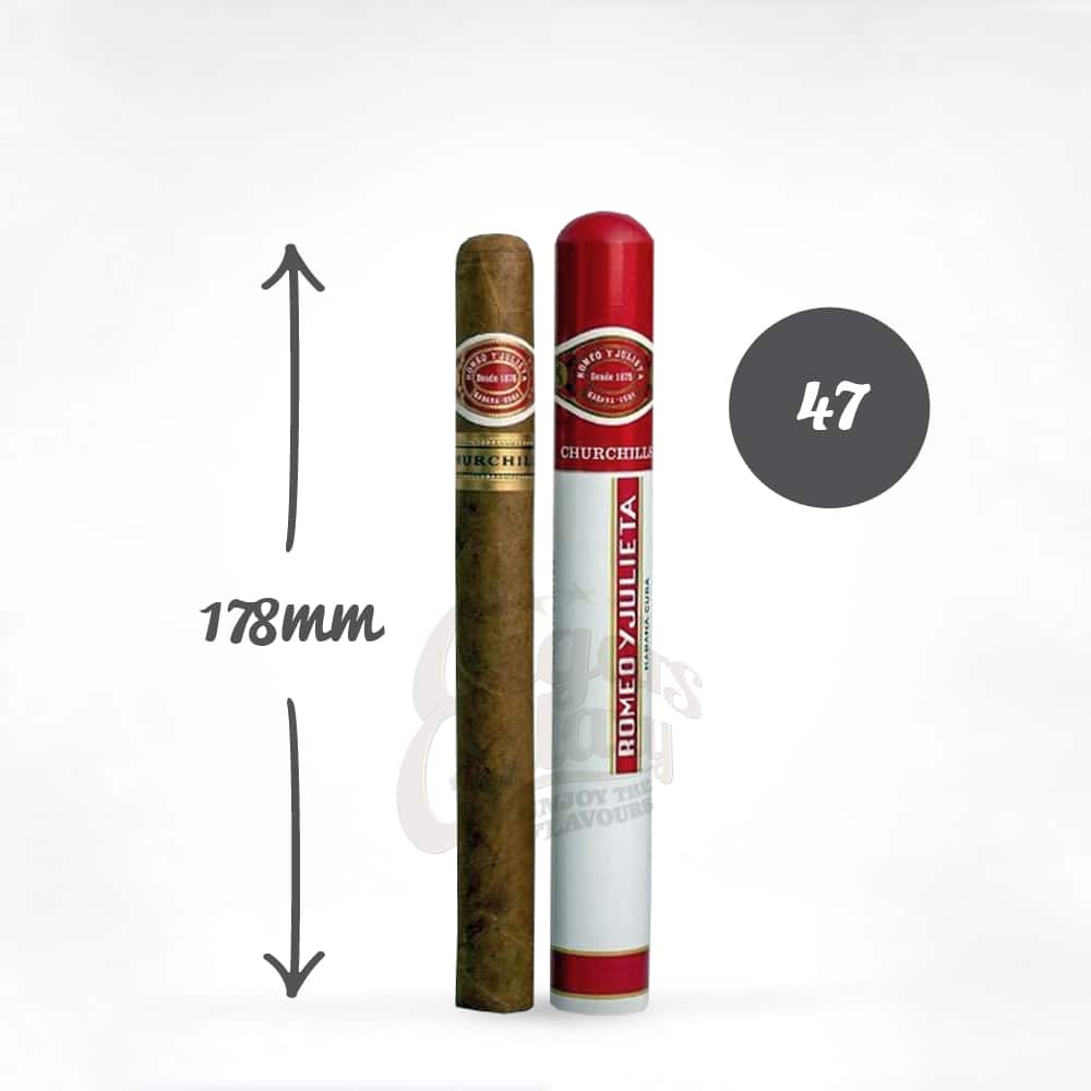Το Churchill είναι ένα από τα κορυφαία πούρα της εταιρείας Romeo y Julieta. Είναι ένα δυνατό πούρο και χρειάζεται χρόνο για να εκτιμήσεις τη γεύση του. Αυτό το πούρο επαναπροσδιορίζει την έννοια του «κρεμώδους καπνού». Δυνατό και ταυτόχρονα απαλό μπορεί να σας αποπλανήσει όπως τον Winston Churchill για τον οποίο παράγονταν αποκλειστικά κατά το 2ο Παγκόσμιο Πόλεμο. Ρωμαλαίο και πολύπλοκο σε γεύσεις γήινες και ξύλου με τόνους από πικάντικα μπαχαρικά.Κυκλοφορεί σε σωληνάριο (tubos) που σας επιτρέπει να το παίρνετε μαζί σας παντού.