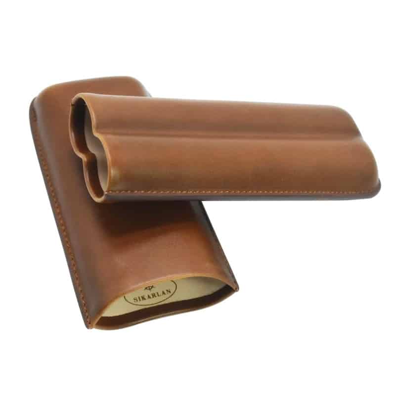 SIKARLAN – Καφέ Δερμάτινη Πουροθήκη για 2 Πούρα Δαχτυλίδι 64 (4043)
