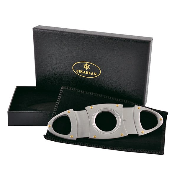 Ο μεταλλικός κόφτης πούρων γκιλοτίνα της Sikarlan είναι κατασκευασμένος από υψηλής ποιότητας ανοξείδωτο ατσάλι, εξασφαλίζοντας ανθεκτικότητα και μακροχρόνια απόδοση. Σχεδιασμένος για να κόβει με ακρίβεια πούρα με δαχτυλίδι έως 56, προσφέρει καθαρή και ομοιόμορφη κοπή, βελτιώνοντας την εμπειρία καπνίσματος.