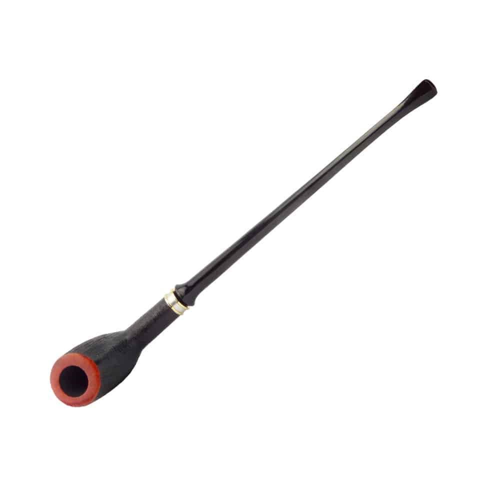 Το μπολ είναι ίσιο με “βουρτσισμένη” υφή σε μαύρο χρώμα και λείες, φωτεινές καφέ λεπτομέρειες. Διαθέτει ακρυλικά επιστόμια και δέχεται φίλτρο 9mm που δένουν αρμονικά σε ένα μεταλλικό δαχτυλίδι σε ασημί και χρυσό, που είναι τοποθετημένο στο στέλεχος της πίπας.