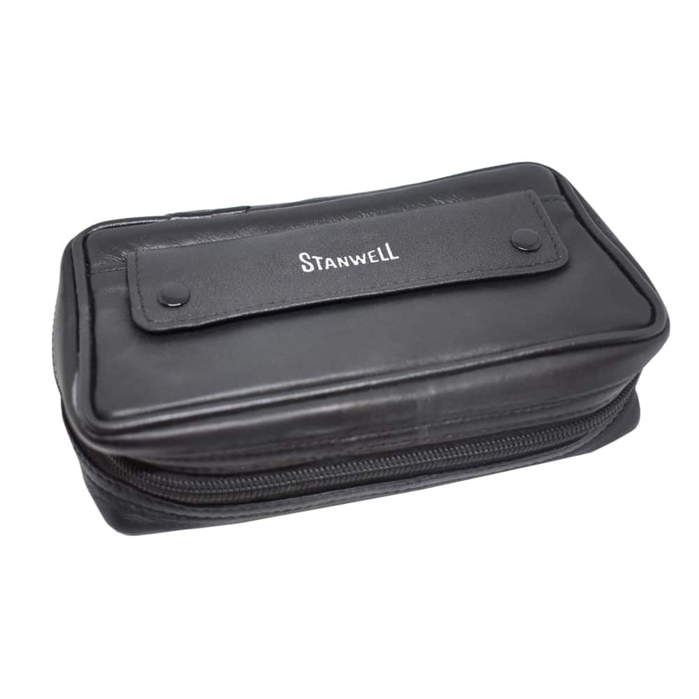 Η θήκη αυτή της Stanwell είναι κατασκευασμένη από 100% γνήσιο δέρμα. Είναι πρακτική, κομψή, σαν μικρό τσαντάκι χειρός και διαθέτει δύο θέσεις για πίπες, ανάλογα πάντα και με το μέγεθος τους και ειδική θήκη για τον καπνό με εσωτερική επίστρωση latex για να διατηρείται η υγρασία, ενώ κλείνει περιμετρικά με φερμουάρ. Εξωτερικά υπάρχει άλλη μια θήκη για τα καθαριστικά, το tamper ή τα φίλτρα σας, που κλείνει με κουμπιά. Είναι εύκολη στη χρήση της και πολύ ευρύχωρη, η ιδανική λύση για να μεταφέρετε τις πίπες σας και τα σύνεργα του καπνίσματος!