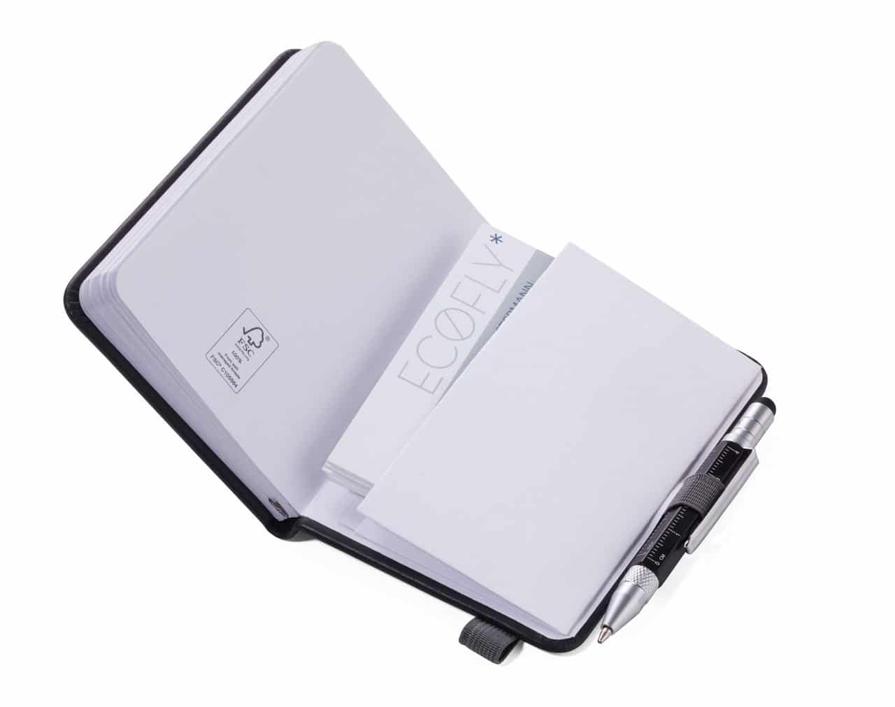 κλείνει με ελαστικό ιμάντα, έχει σημειωματάριο με διάτρητες πλευρές, πρακτικό