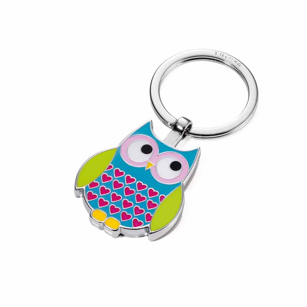 Το μπρελόκ της Γερμανικής εταιρείας Troika “Rosy” με μοντέρνο σχέδιο με μεγάλο κρίκο για κλειδιά και μια πανέμορφη, μικρή κουκουβάγια.