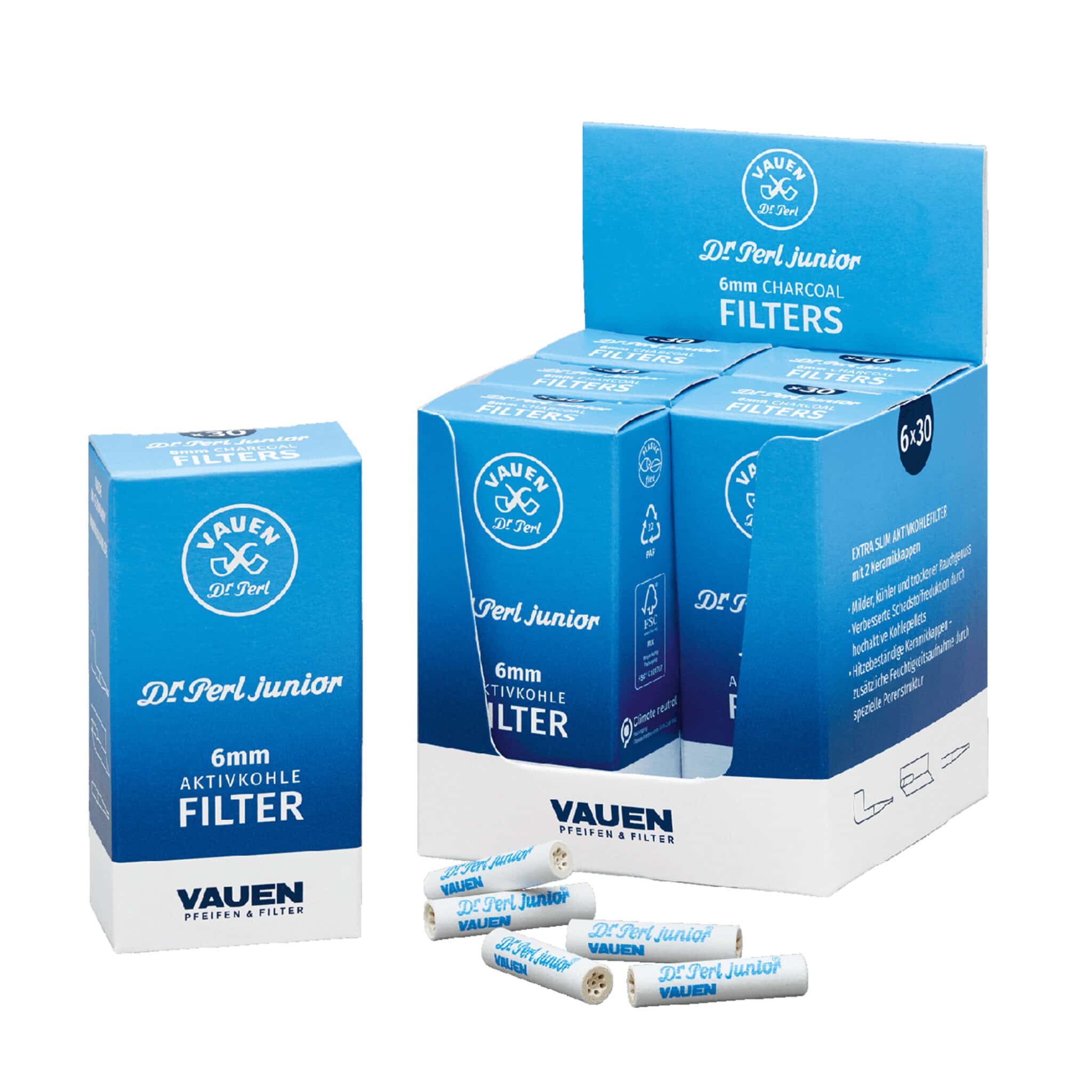 Συσκευασία με 30 Φίλτρα VAUEN Dr Perl Junior Ενεργού άνθρακα κατάλληλα για διατομές 6mm.