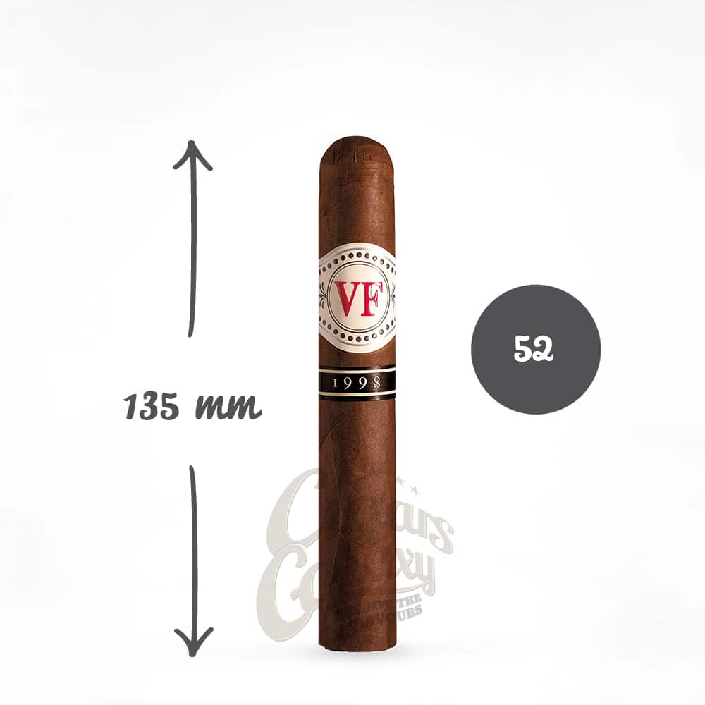 Τα πούρα VegaFina 1998 είναι αποτέλεσμα εξαιρετικής χειροποίητης τέχνης, με φύλλα καπνού προσεκτικά επιλεγμένα και παλαιωμένα για τουλάχιστον 3 χρόνια. Αυτή η λεπτή διαδικασία παρέχει στα πούρα έναν μοναδικό και ισορροπημένο χαρακτήρα που διακρίνεται για το έντονο άρωμα και την πλούσια γεύση γεμάτη αποχρώσεις και νότες ξηρών καρπών, μπαχαρικών και μελάσας.