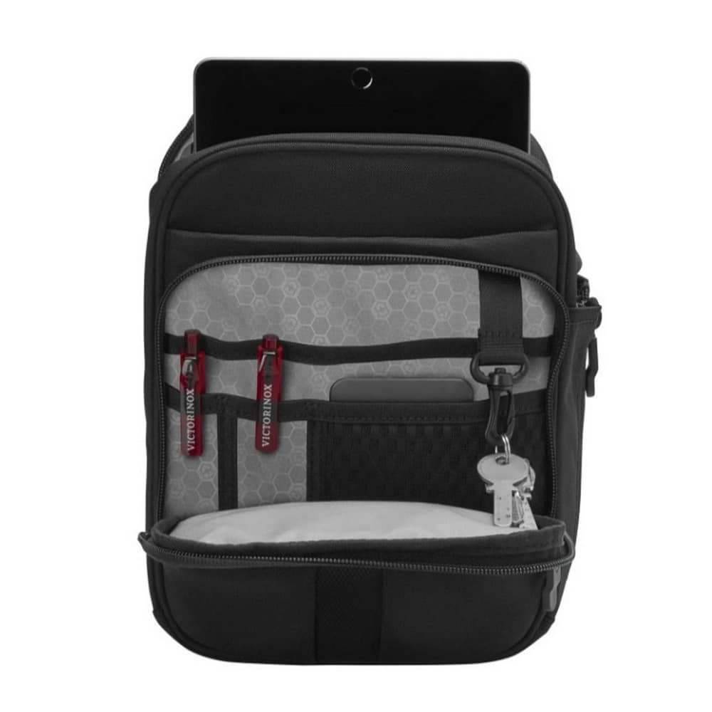 Μεταφέρετε τις ψηφιακές σας συσκευές με αυτό το άψογα σχεδιασμένο τσαντάκι ώμου από την Victorinox! Με ειδικά διαμερίσματα και προστασία δεδομένων RFID, σας καλύπτει, ώστε να μπορείτε να αδράξετε τη μέρα σας και με τα δύο σας χέρια!