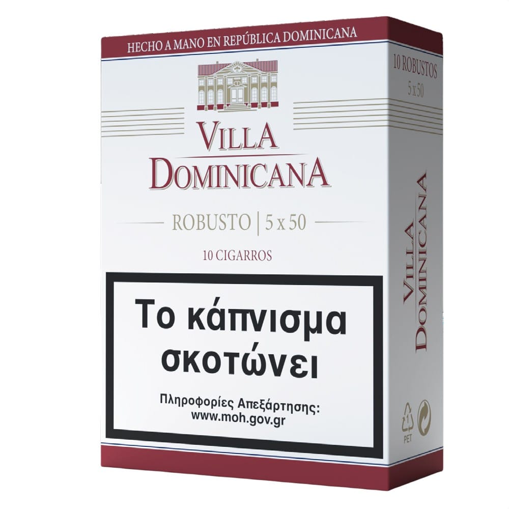 Επιτέλους και στη χώρα μας η σειρά χειροποίητων πούρων της Villiger, τα Villa Dominicana! To Villa Dominicana Robusto είναι τυλιγμένο στο χέρι στον Άγιο Δομίνικο με τα διάσημα Equadorian Connecticut Seed wrapper για την ντελικάτη, γήινη γεύση τους, και filler από τα πιο εκλεπτυσμένα και ταυτόχρονα πικάντικα καπνά Piloto, είναι σίγουρο πως θα γεμίσει τις στιγμές σας με την ασυνήθιστη αρμονία του.