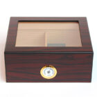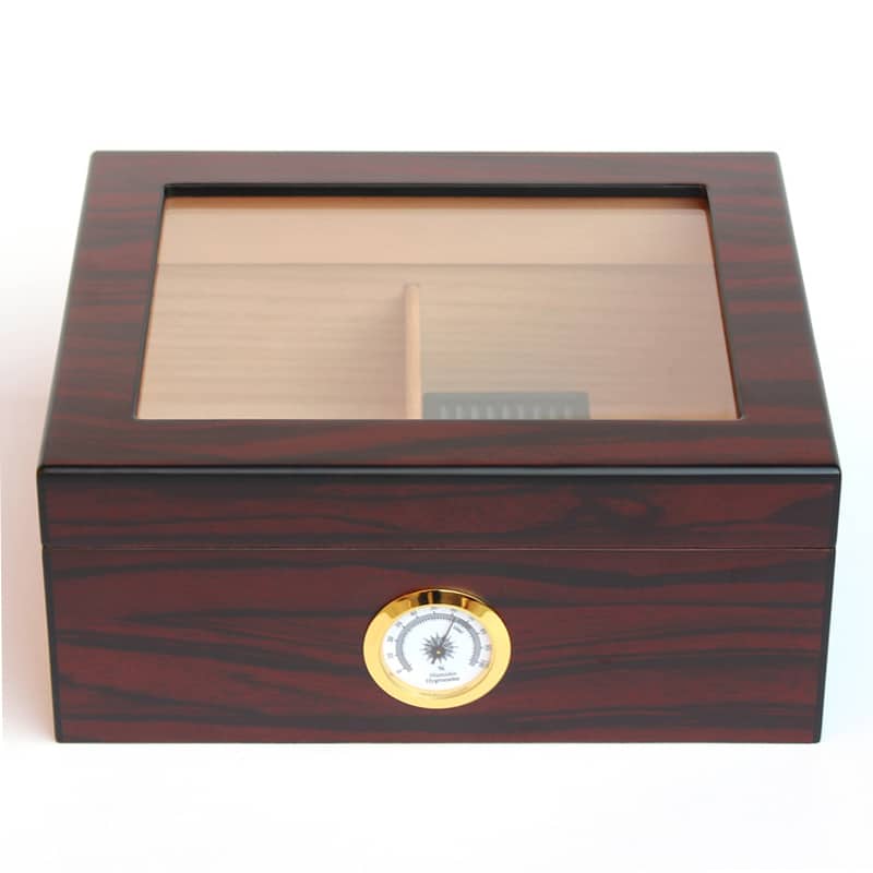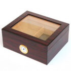 Yγραντήρας πούρων σε matte φινίρισμα με καφέ-κόκκινο χρώμα κερασιάς, με γυάλινο τζάμι στο καπάκι και εσωτερική επένδυση κέδρου.