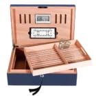 Όταν το κλασικό συναντά το μοντέρνο, το αποτέλεσμα είναι ένας υγραντήρας με χαρακτήρα. Το βαθύ μπλε εξωτερικό του τραβά τα βλέμματα, προσθέτοντας μια δόση φινέτσας χωρίς να χάνει την ουσία του: να διατηρεί τα πούρα στις τέλειες συνθήκες.