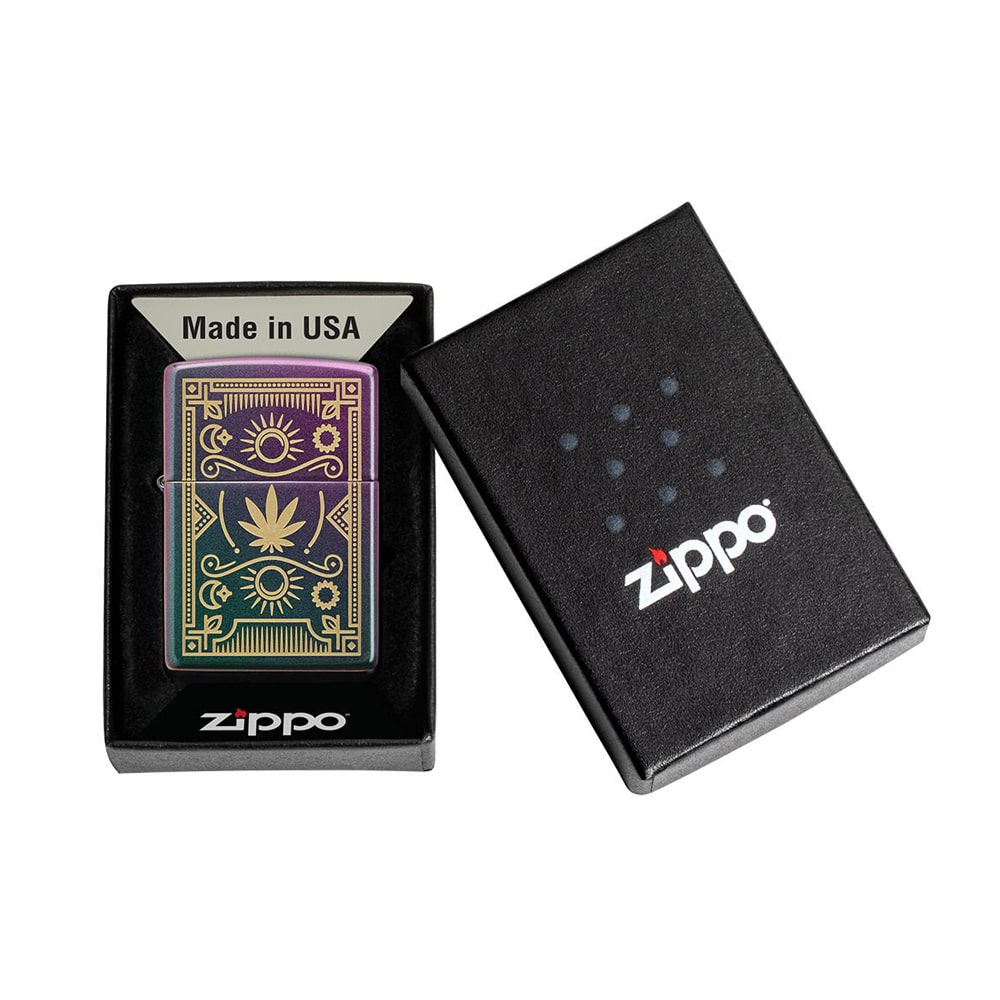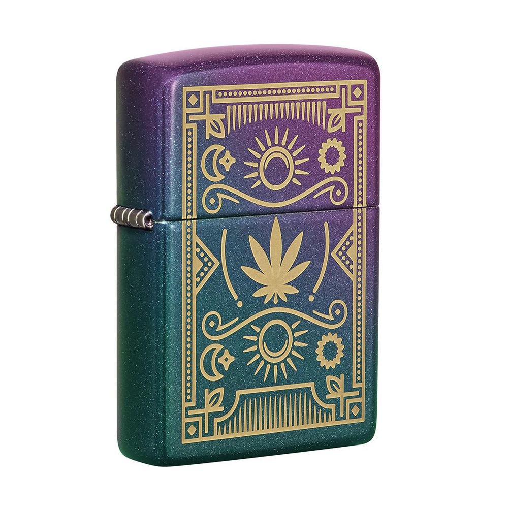 Το νέο σχέδιο Cannabis design είναι χαραγμένο με λέιζερ στην επιφάνεια ενός ιριδίζοντος αναπτήρα Zippo. Η διαδικασία χάραξης με λέιζερ κάνει να εμφανίζεται η ορειχάλκινη επιφάνεια του αναπτήρα κάτω από την ιριδίζον επικάλυψή του. Το σχέδιο του Cannabis design διαμορφώνεται με αυτήν την τεχνική, δημιουργώντας μια εντυπωσιακή αντίθεση.