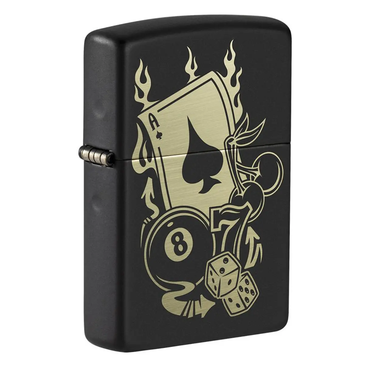 Ο Zippo Gambling Design είναι ένας αυθεντικός αναπτήρας Zippo με ξεχωριστή συλλεκτική αισθητική, εμπνευσμένη από τον κόσμο της τύχης και του παιχνιδιού. Το εντυπωσιακό σχέδιο με τα χαρτιά, τα ζάρια και τα σύμβολα του καζίνο αποτυπώνεται με ακρίβεια πάνω στο μεταλλικό σώμα, προσδίδοντας χαρακτήρα και μοναδικότητα.